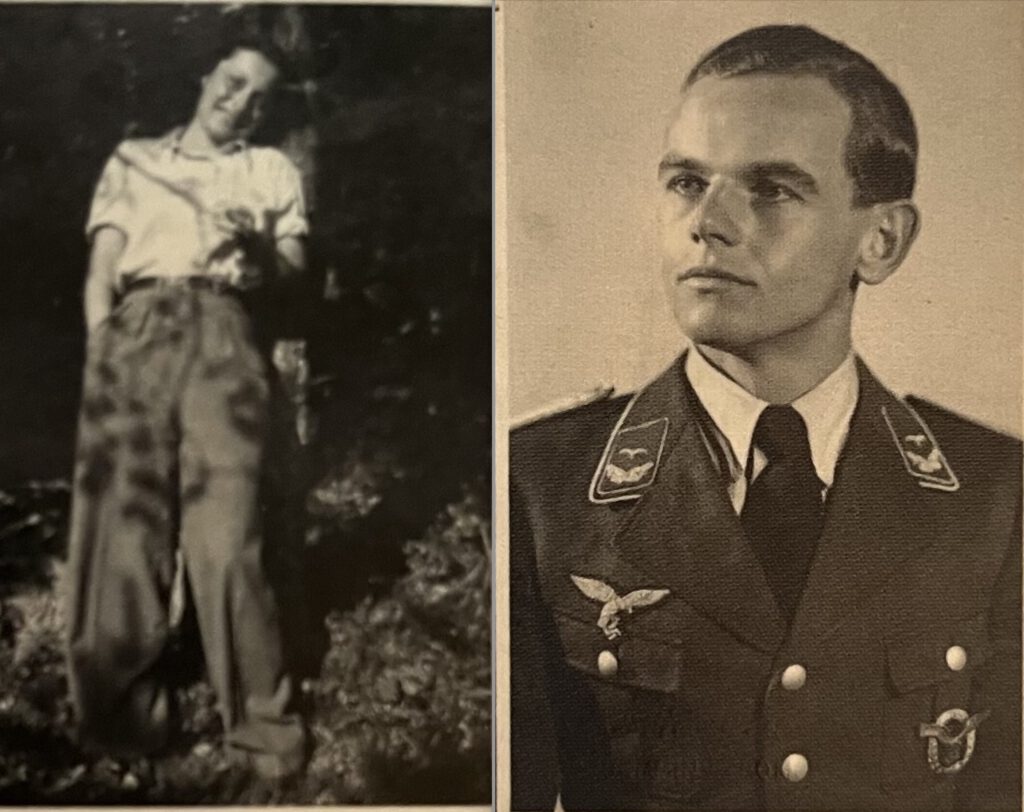 Ellen Lydia Liedtke, geboren 1919, hatte sicherlich das, was man eine schwierige Kindheit nennen würde: Ihre Mutter starb 1934, als sie 15 Jahre alt war, und ihr Vater wurde ihr 1941 genommen, als sie 22 Jahre alt war. In der Zeit zwischen diesen beiden Todesfällen lebte sie bei ihrem Vater – ausweislich einiger Zeugenaussagen in den Prozessen in durchaus geordneten und wohlhabenden Verhältnissen. Aber sie suchte – und fand – offenbar enge Bindungen mit schwierigen Zeitgenossen in ungünstigen Zeiten (1). Zunächst verliebte sie sich in einen strammen Nationalsozialisten, Walter Meltzer, geboren am 15. Oktober 1915 in Dresden. Er war ein hoch-dekorierter Luftwaffenpilot mit NSDAP-Mitgliedschaft, der gern SS-Mitglied geworden wäre (Bild 5). Als er nach einer Belobigung ankündigte, Hitler um die Erlaubnis zu fragen, seine jüdische Freundin zu heiraten, wurde er degradiert und verlor als Testpilot am 15. August 1943 sein Leben. Nach seiner Beerdigung versteckte sich Ellen in Schlesien und brachte vier Monate später ihren gemeinsamen Sohn Klaus zur Welt. Es bleibt aus den vorliegenden Unterlagen unklar, ob sie und Walter Meltzer wirklich verheiratet waren, wenngleich sie in allen amtlichen Unterlagen betonte, sie sei eine Witwe.